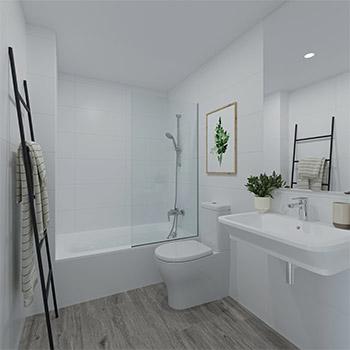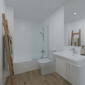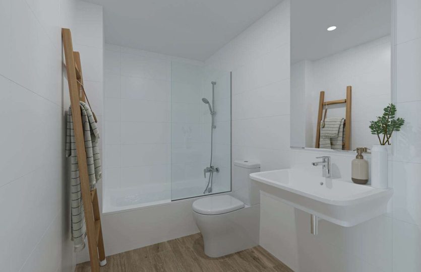 De kamers hebben ingebouwde kleerkasten en de badkamers worden geleverd met meubels en ledverlichting.