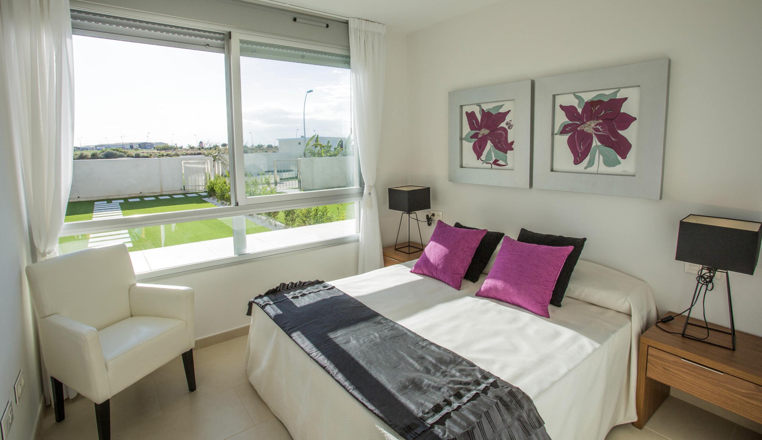 De slaapkamers hebben grote panoramische ramen die zorgen voor veel lichtinval. De badkamers zijn modern van stijl, uitgevoerd in uitstekende kwaliteitsmaterialen en worden compleet geleverd met wastafel, badkamermeubel, spiegel en douchescherm.