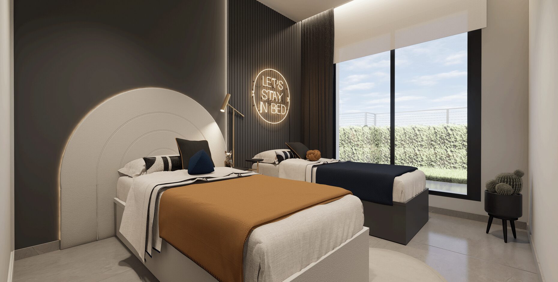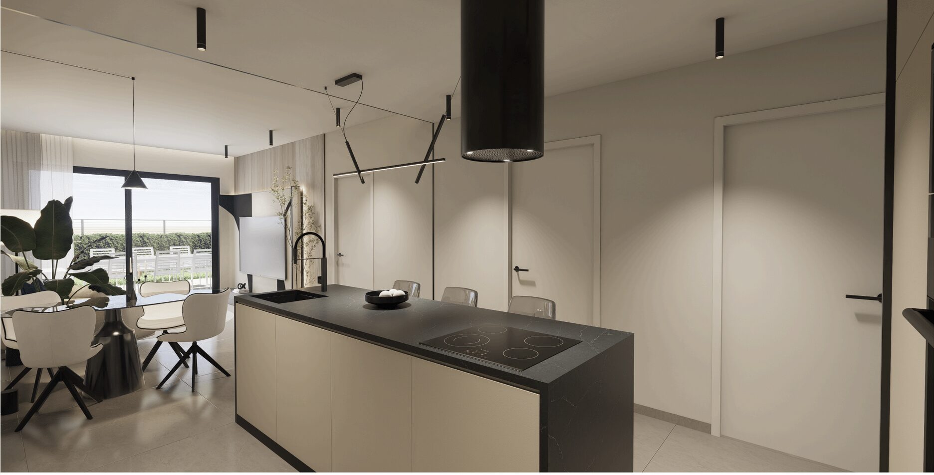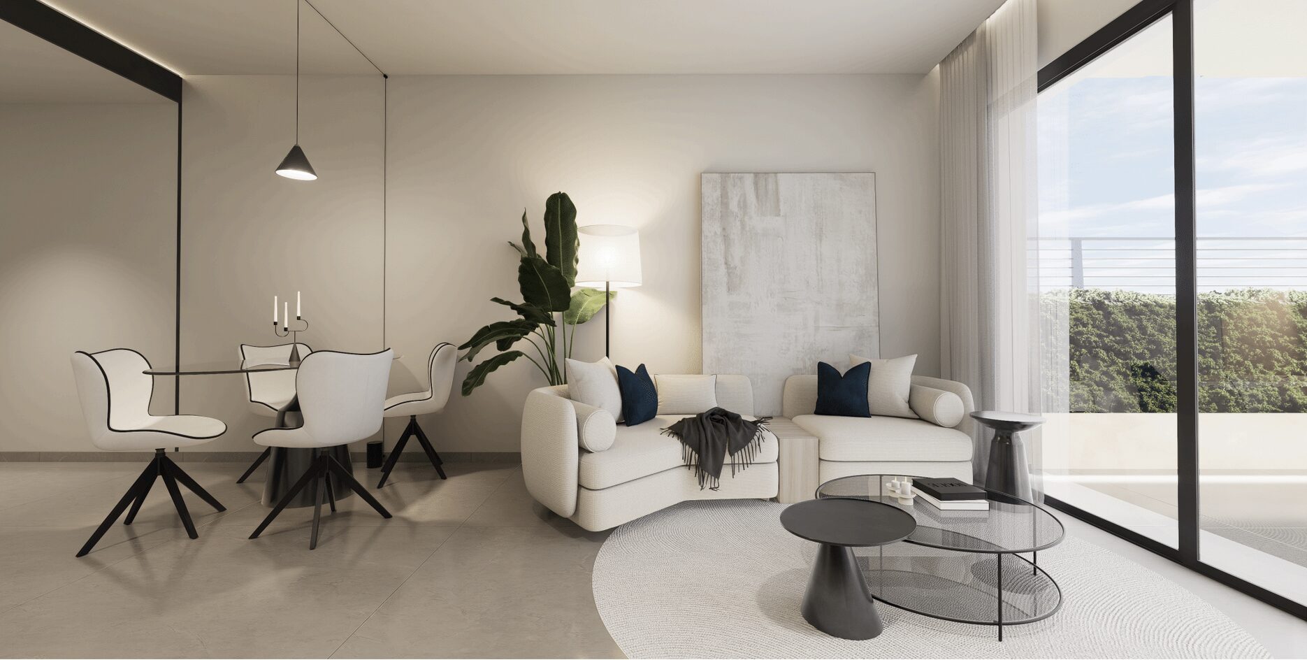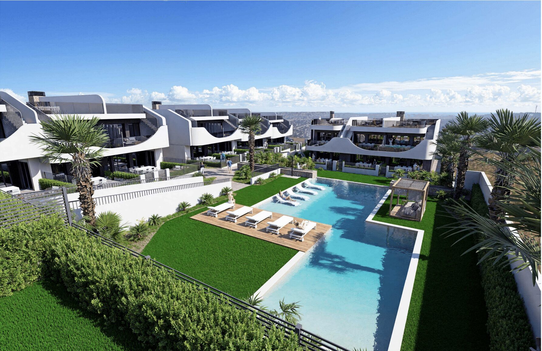De appartementen beschikken verder over airconditioning en ledverlichting. Het exterieur van het complex omvat een garage en een berging. De gemeenschappelijke ruimtes bestaan uit grote groene ruimtes, een gemeenschappelijk zwembad en een dakterras.