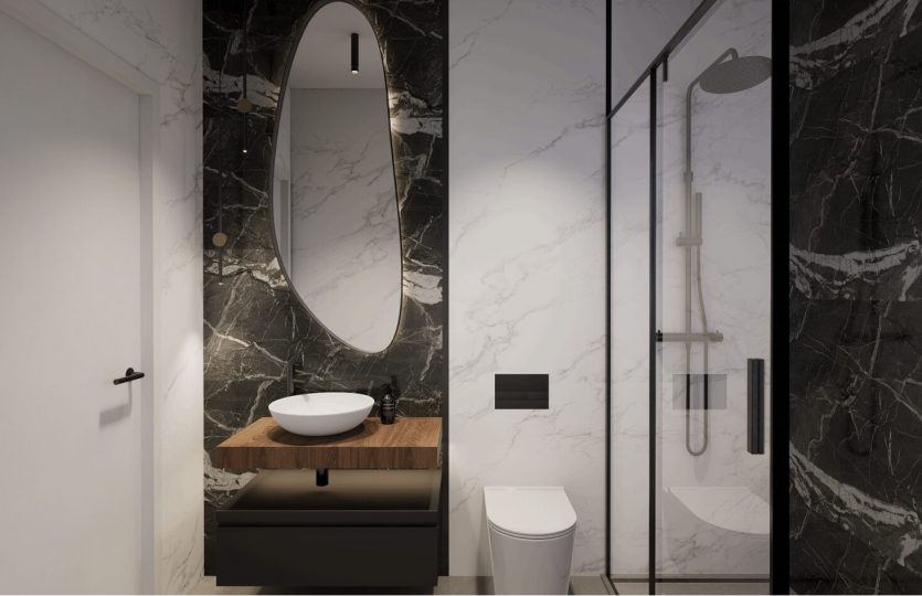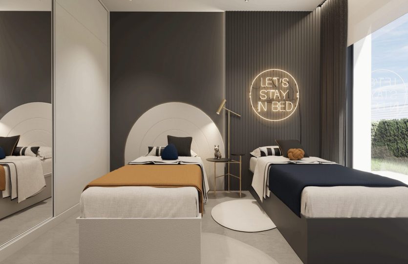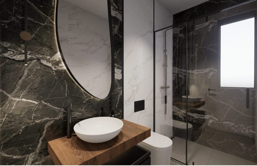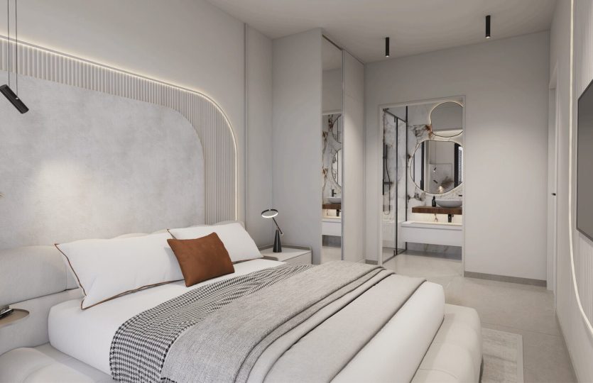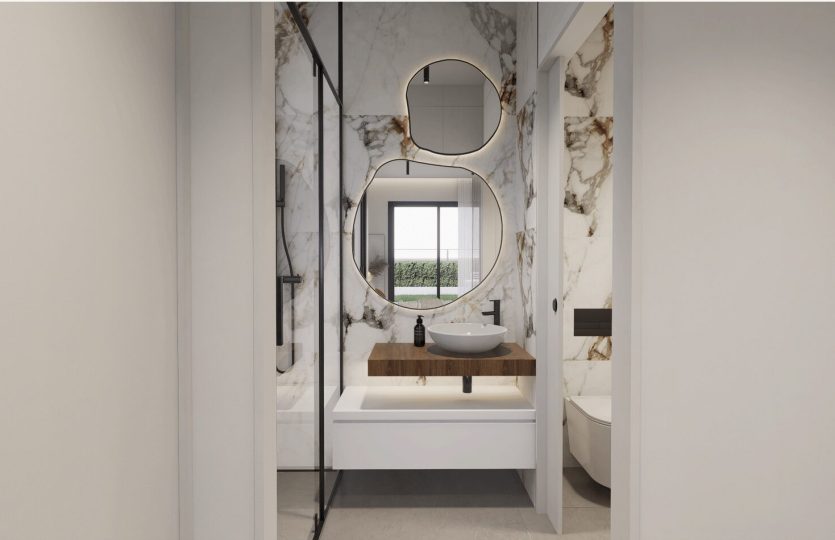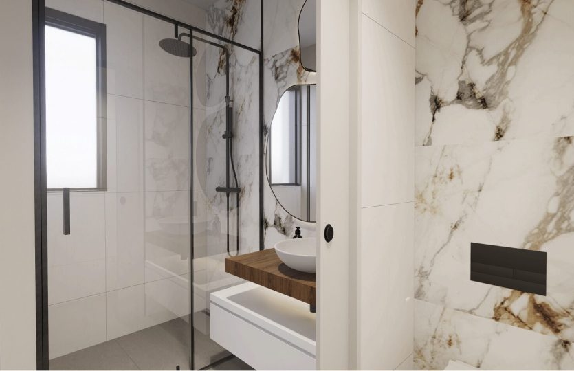 De slaapkamers zijn ruim en elegant ontworpen. De badkamers hebben een moderne stijl en zijn voorzien van porseleinen sanitair en compleet met een wastafel, badkamermeubel, spiegel en douchescherm.