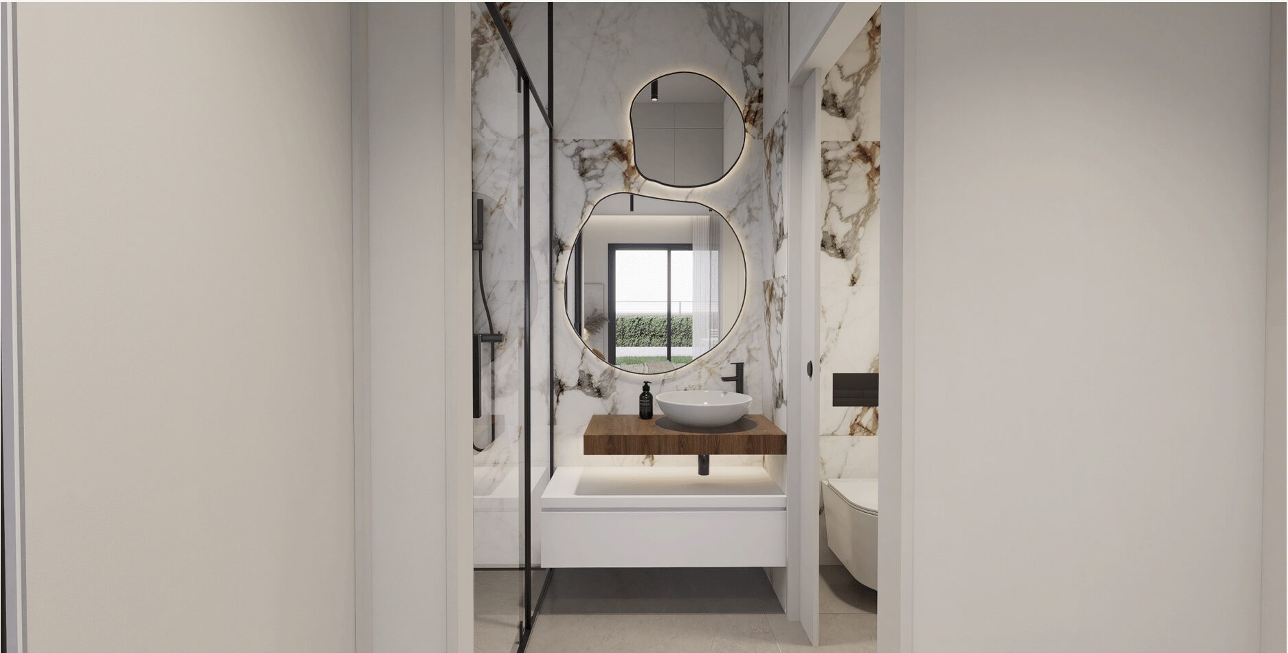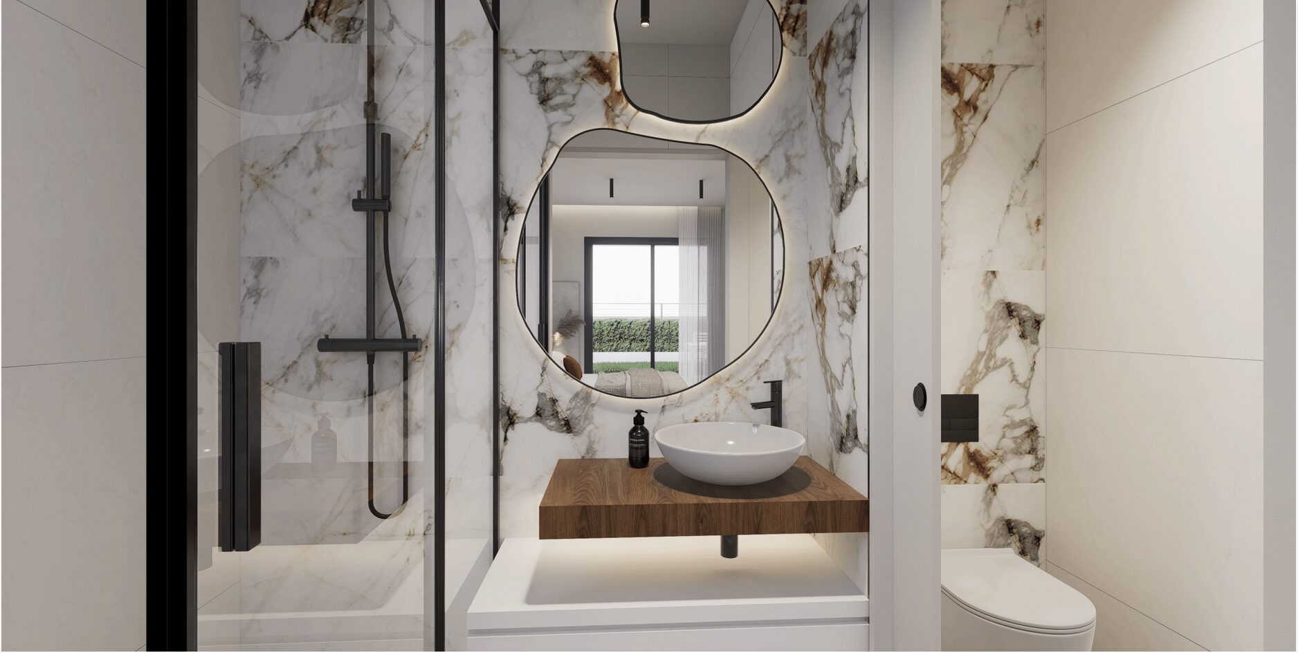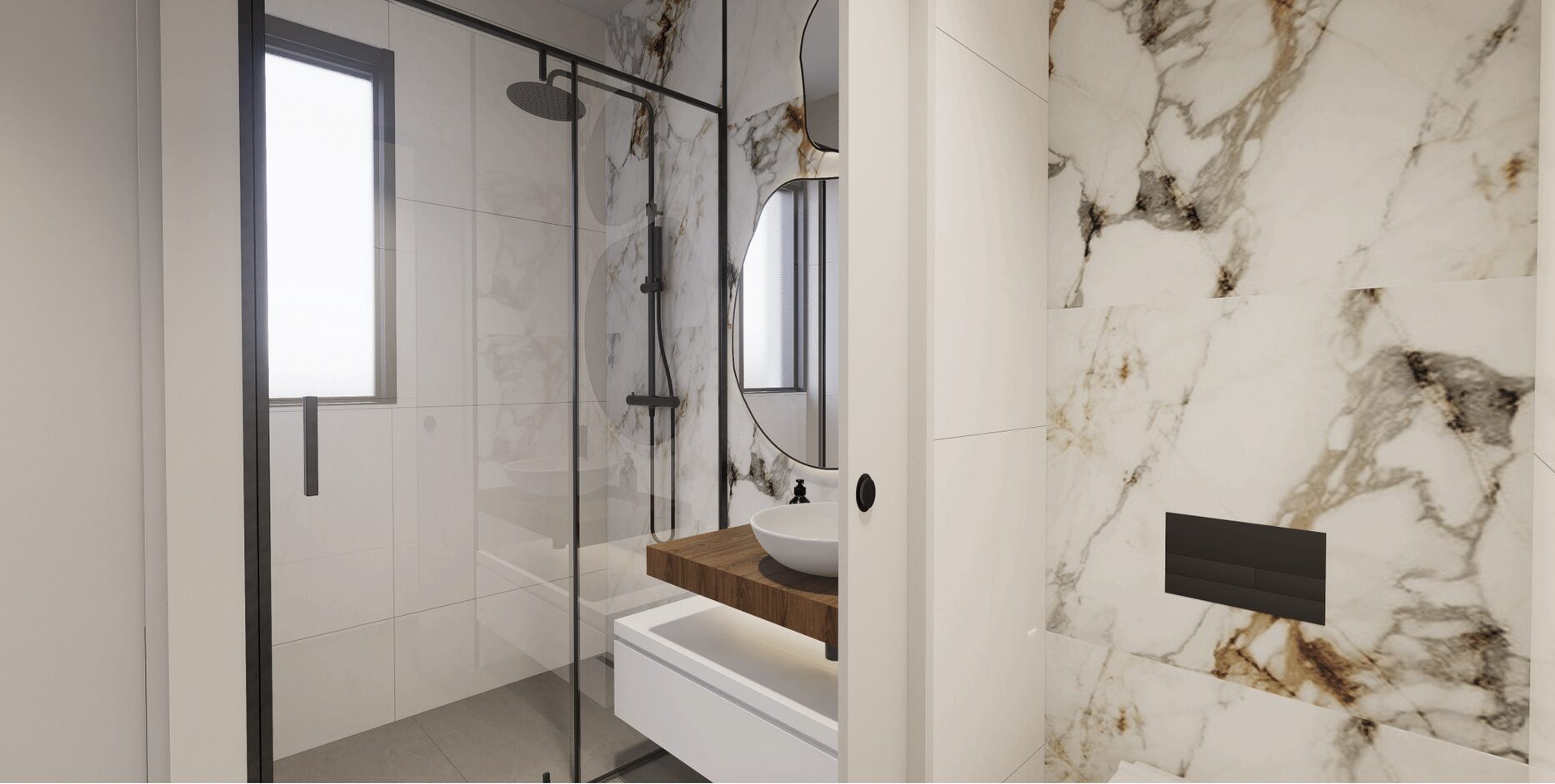 De slaapkamers zijn ruim en elegant ontworpen. De badkamers hebben een moderne stijl en zijn voorzien van porseleinen sanitair en compleet met een wastafel, badkamermeubel, spiegel en douchescherm.
