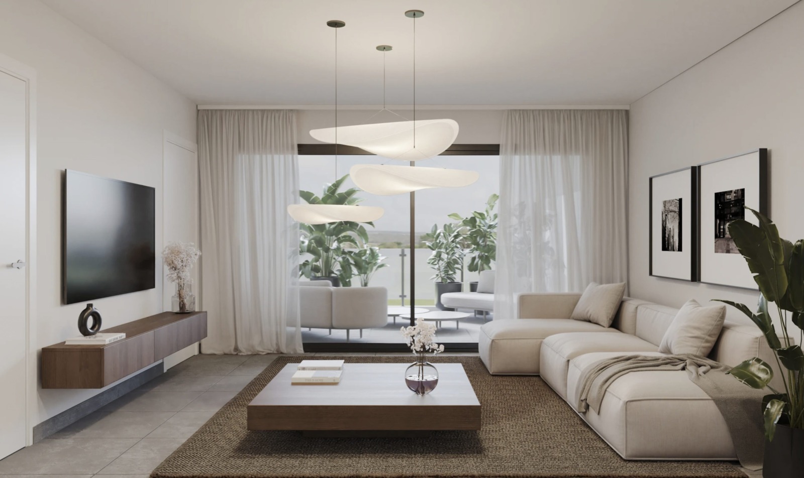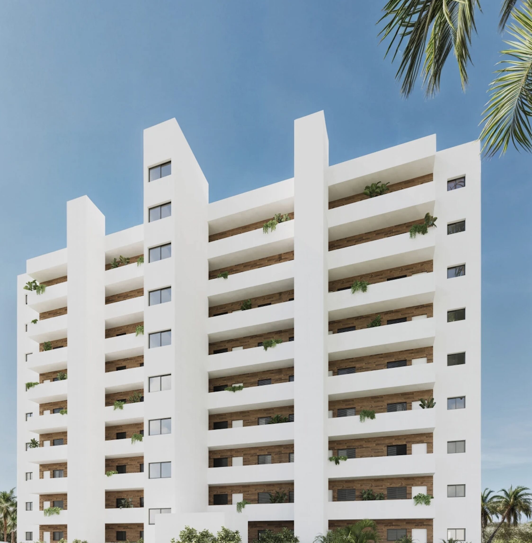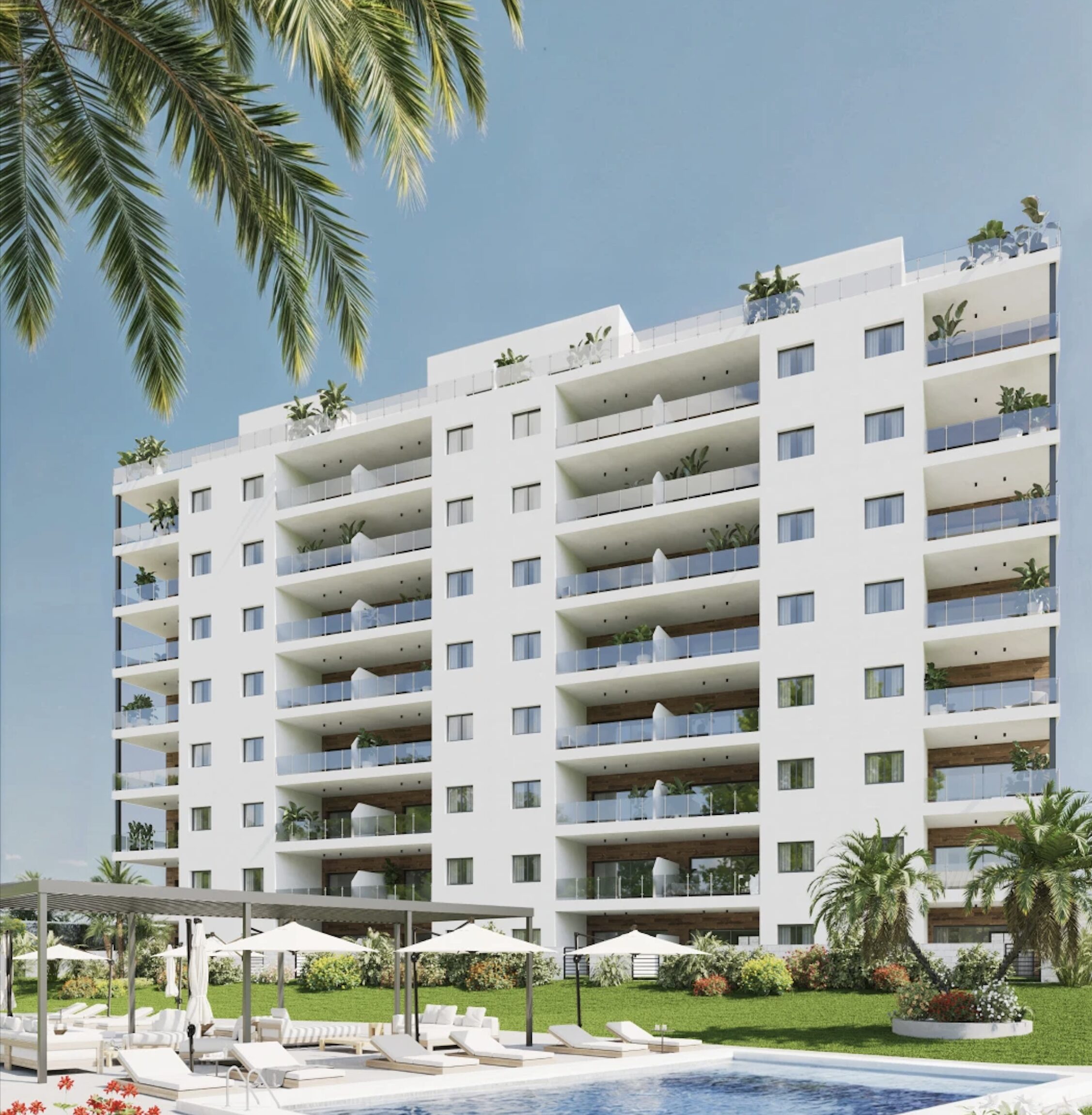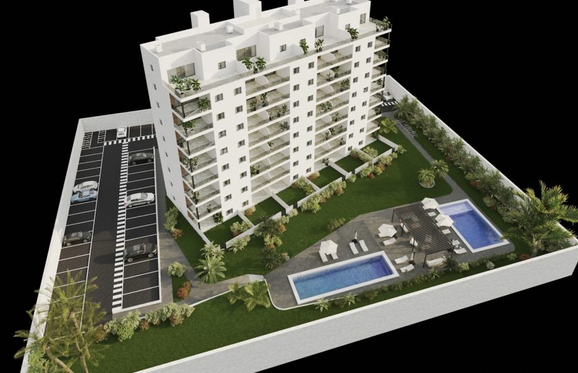 De buitenruimtes bestaan ​​uit twee grote zwembaden, een barbecueplek, groene zones en een fitnessruimte. De appartementen zijn inclusief parkeerplaats en berging.