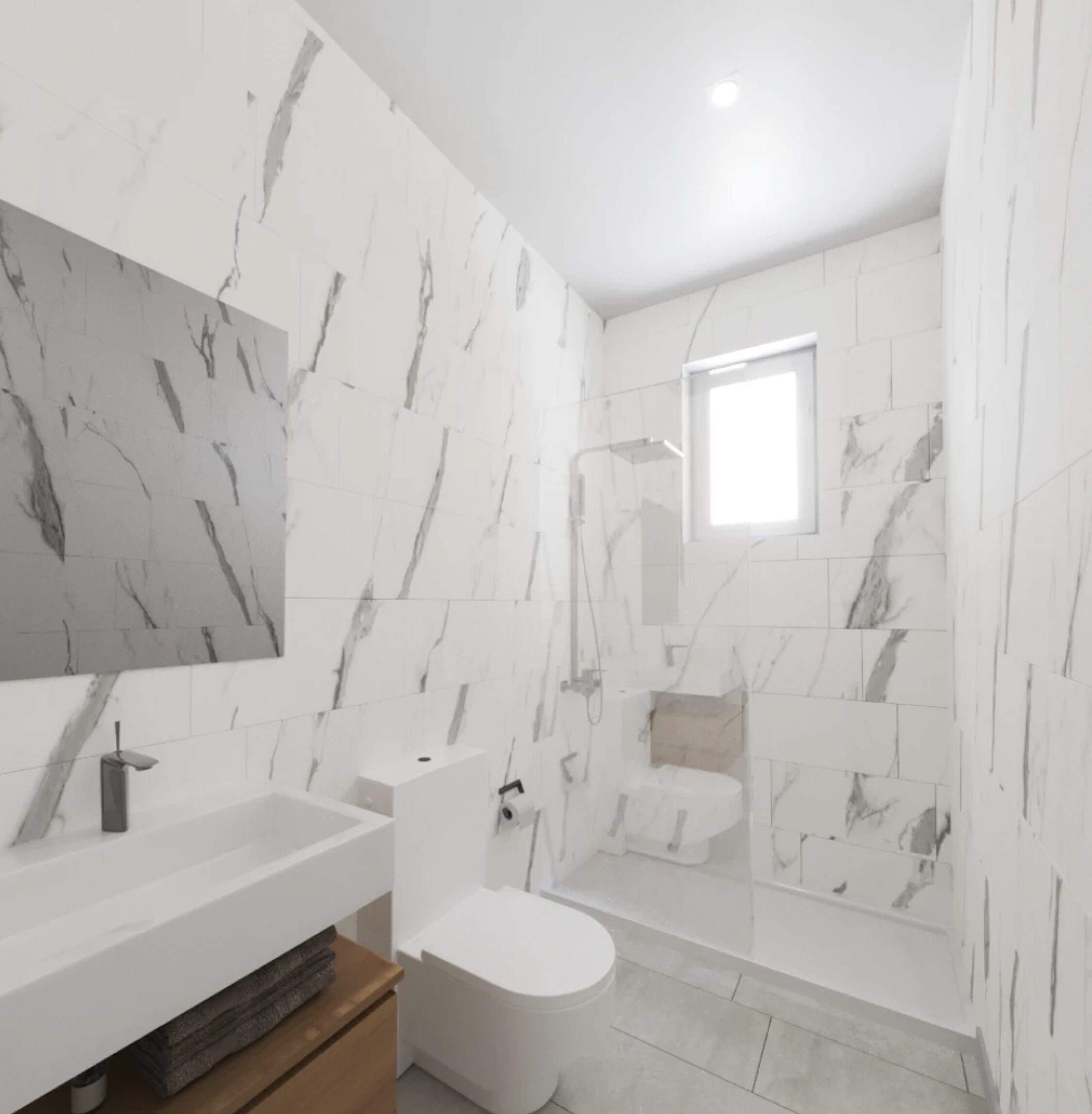 De slaapkamers zijn ruim en licht en beschikken over inbouw kledingkasten. De badkamers zijn uitgevoerd met porseleinen sanitair en worden compleet geleverd met wastafel en badkamermeubilair.