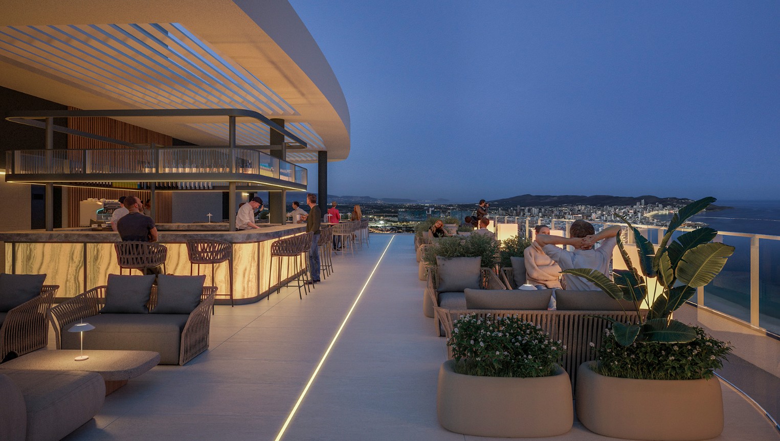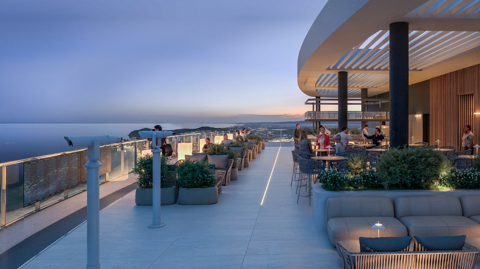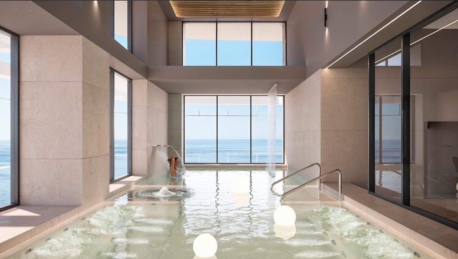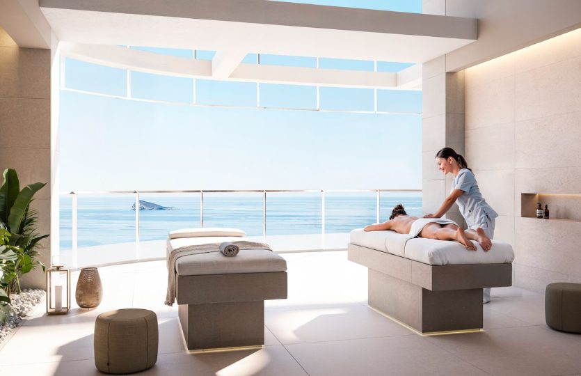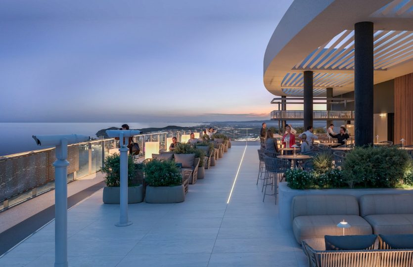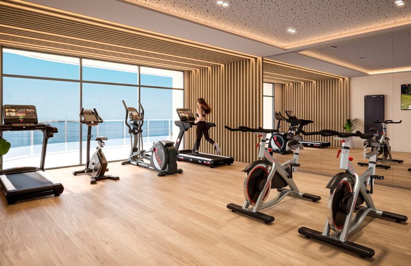 Je geniet hier van verwarmde zwembaden, een fitnessruimte met zeezicht, een bioscoopzaal, diverse sportfaciliteiten, royale panoramische terrassen en een sky bar met observatiedek op de bovenste verdieping. Alles is ontworpen om te ontspannen, te ontmoeten en te genieten, zonder het gebouw te hoeven verlaten.