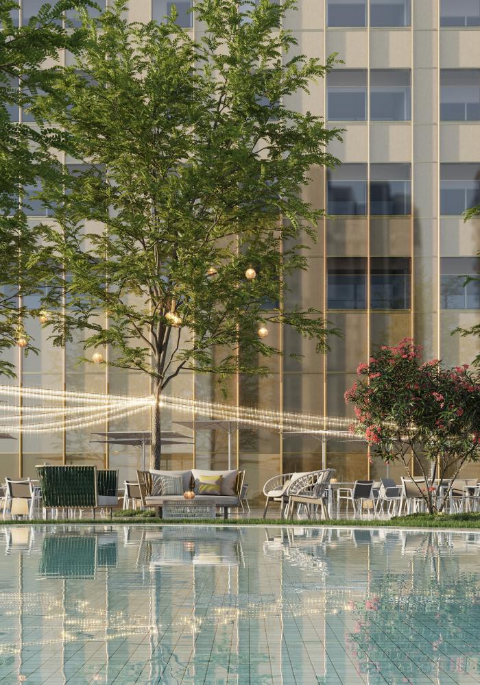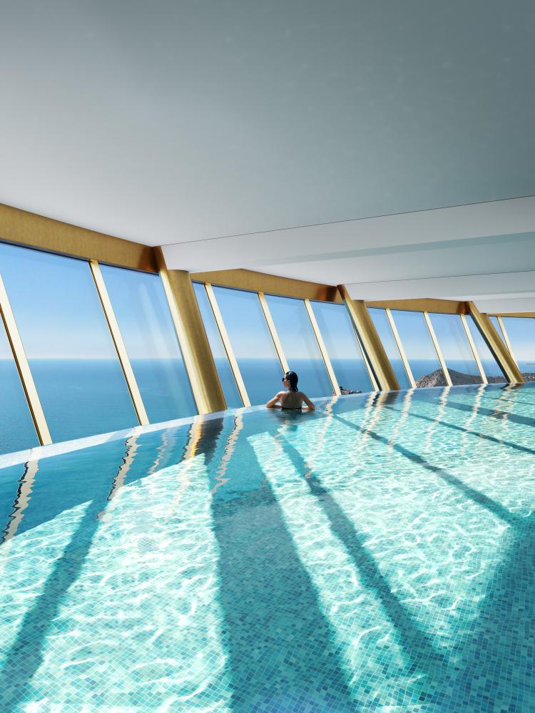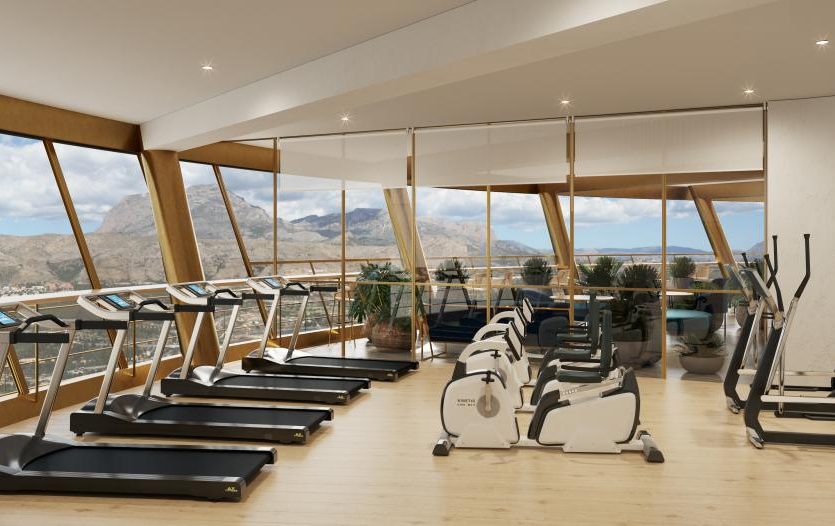 6.500 m2 gemeenschappelijke ruimtes met voorzieningen zoals restaurant en bar, massageruimtes, zwembaden, fitnessruimte en sauna.