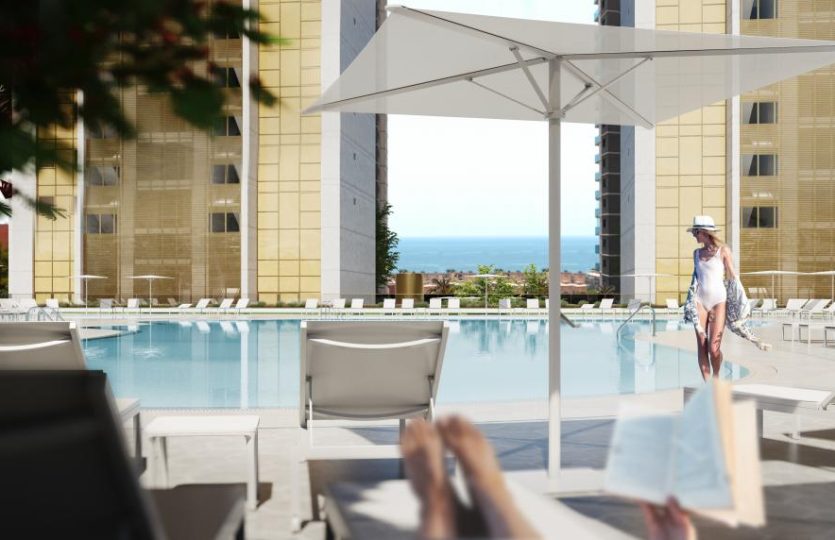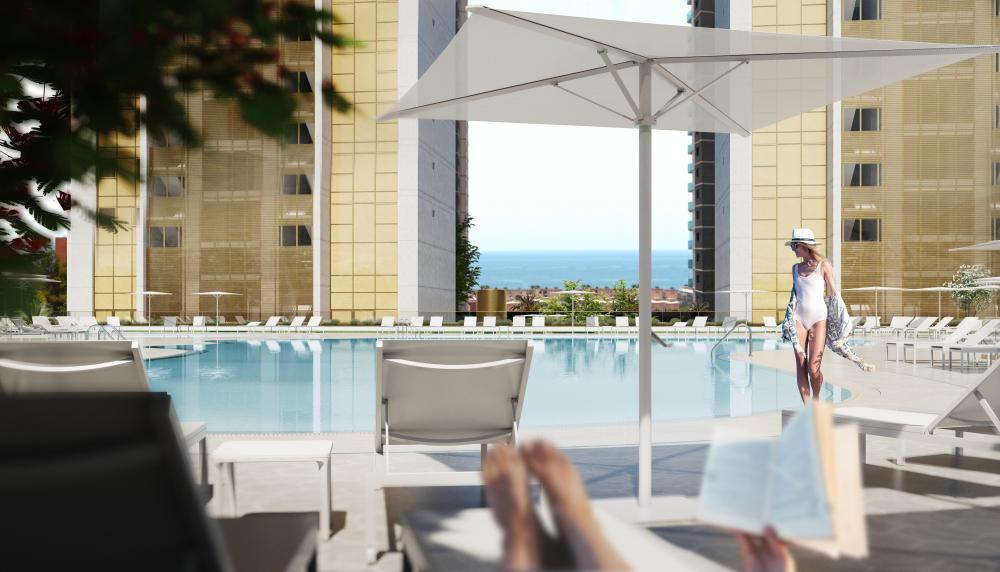 Appartementen met één, twee, drie of vier slaapkamers in een exclusief gebouw van 47 verdiepingen met een fantastisch uitzicht op het Poniente-strand.