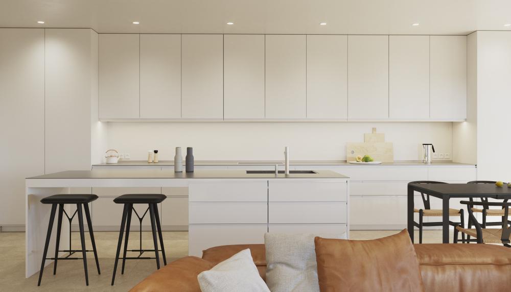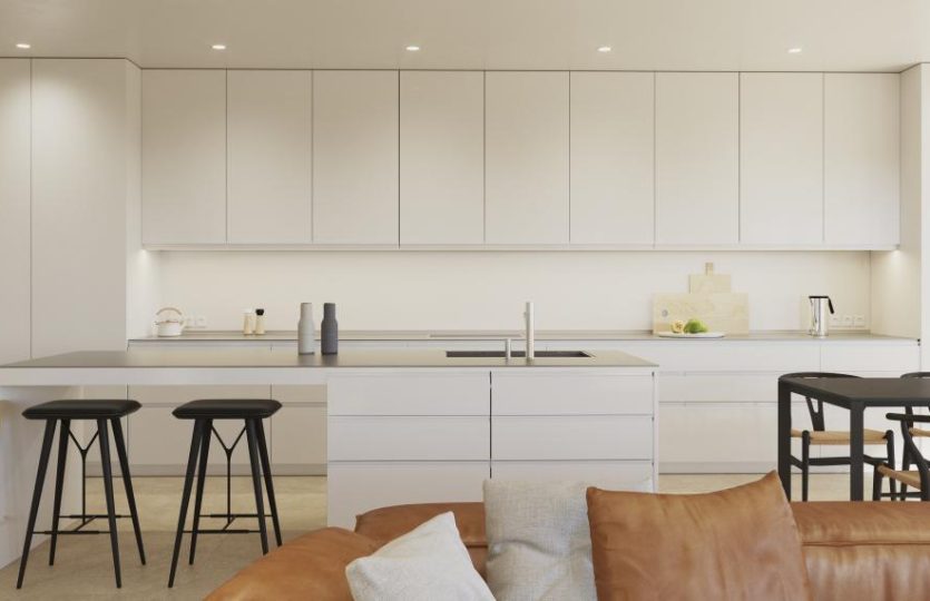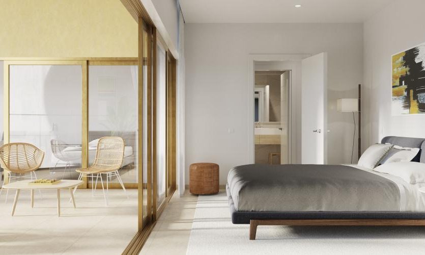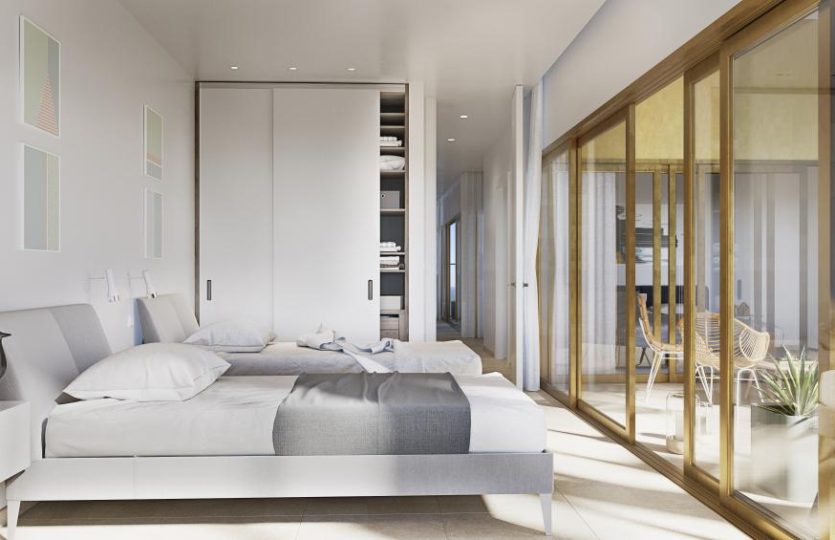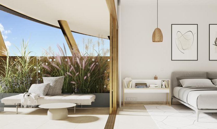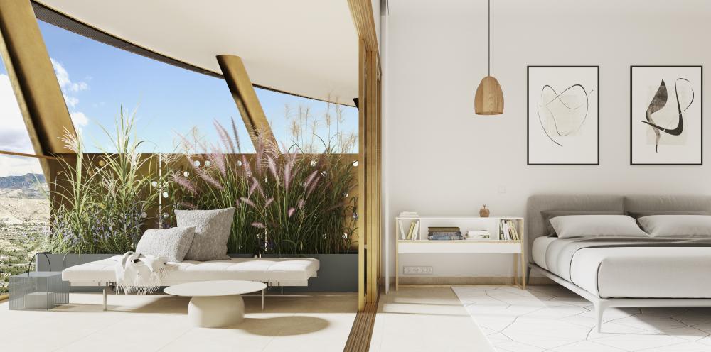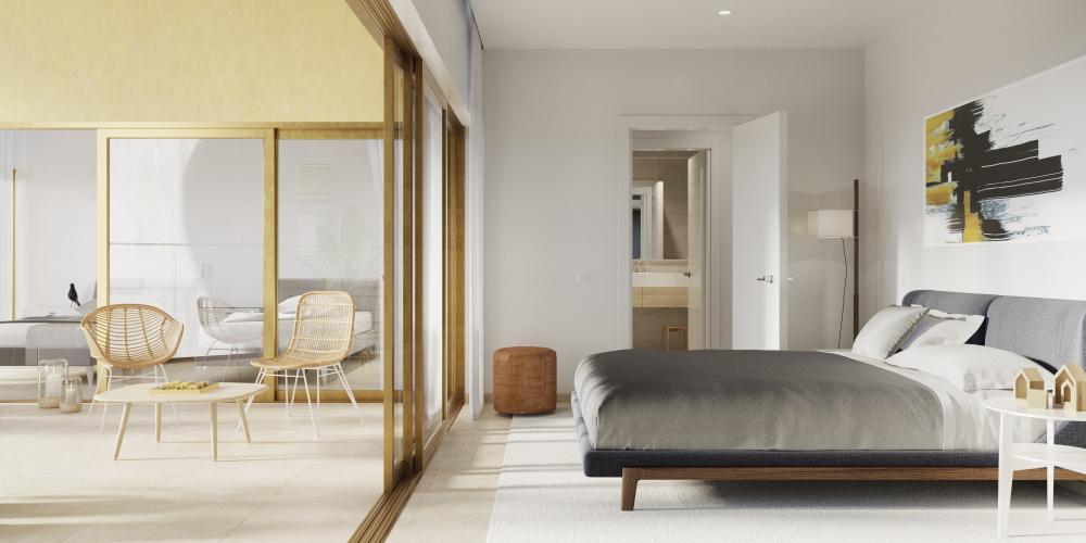 Alle appartementen hebben een eigen terras met toegang vanuit de woonkamer en slaapkamer.