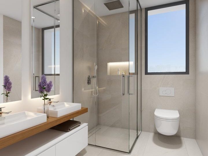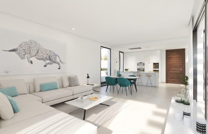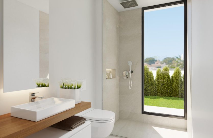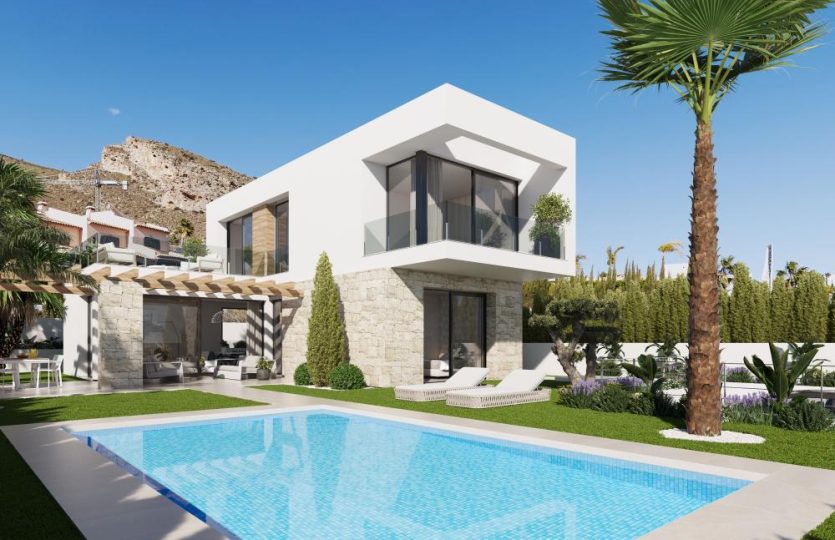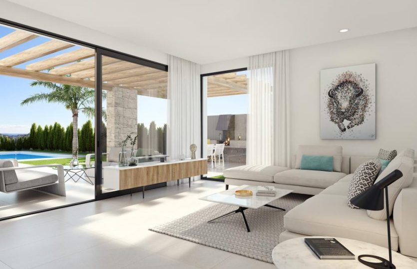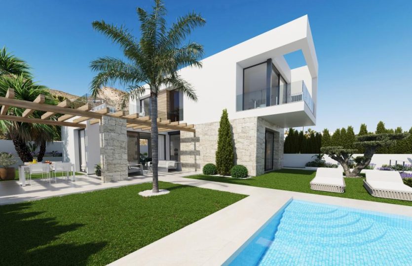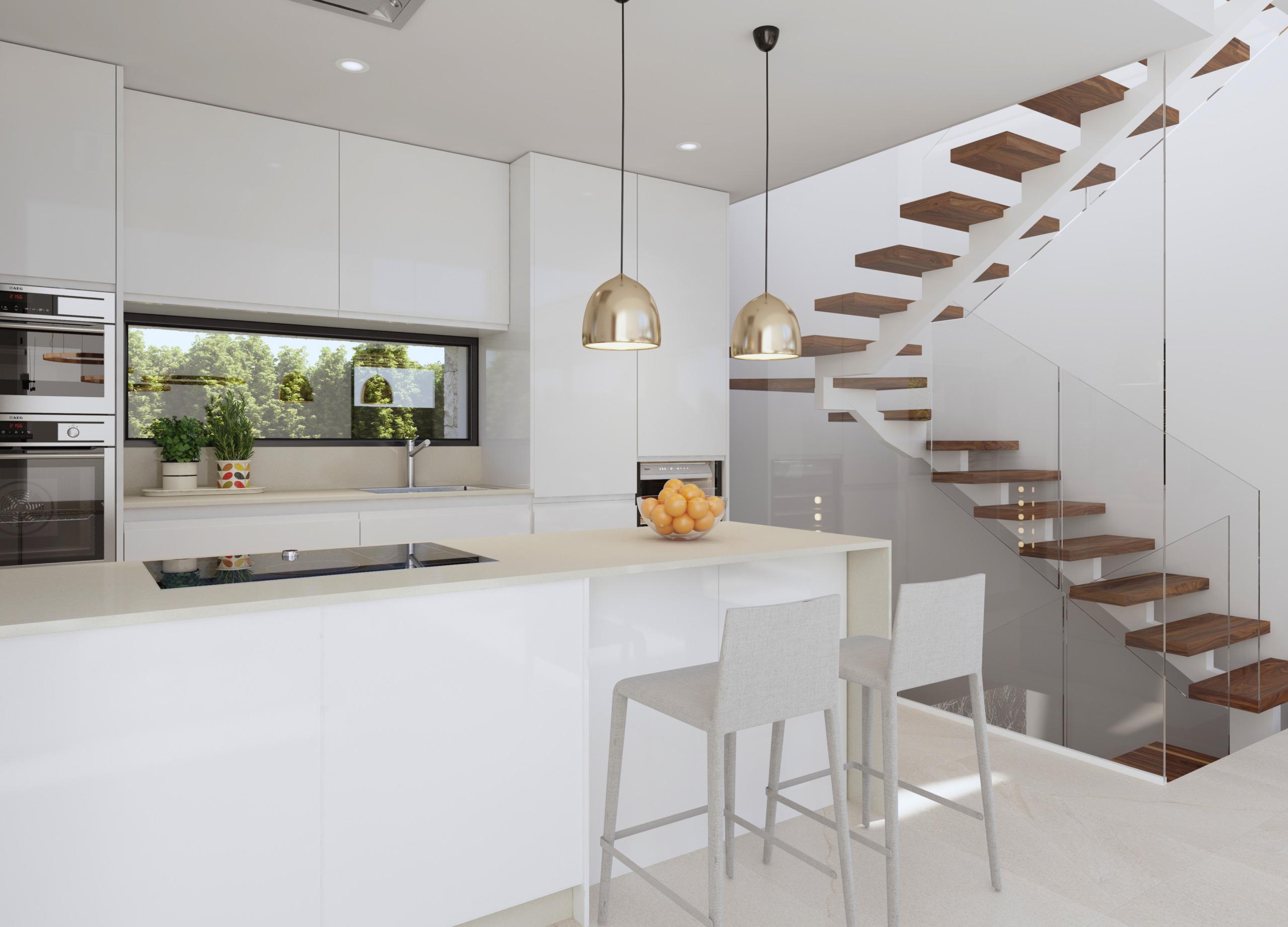 Vrijstaande villa’s met drie slaapkamers en drie badkamers verdeeld over twee verdiepingen. De begane grond heeft een open woon-eetkamer geïntegreerd met de keuken, een slaapkamer en een badkamer.