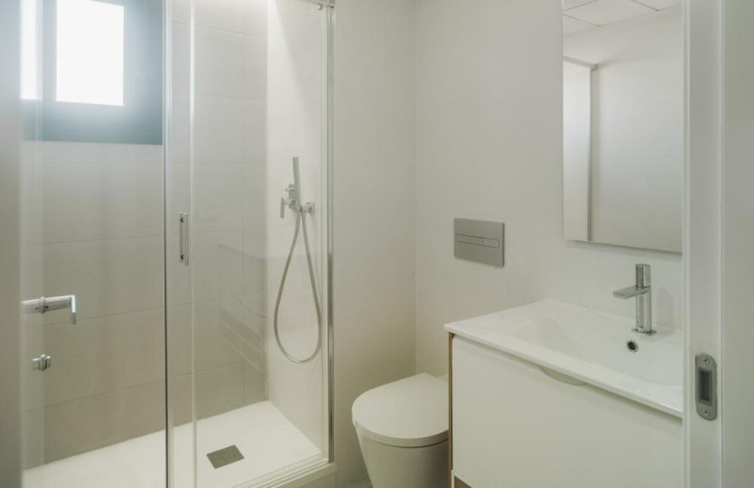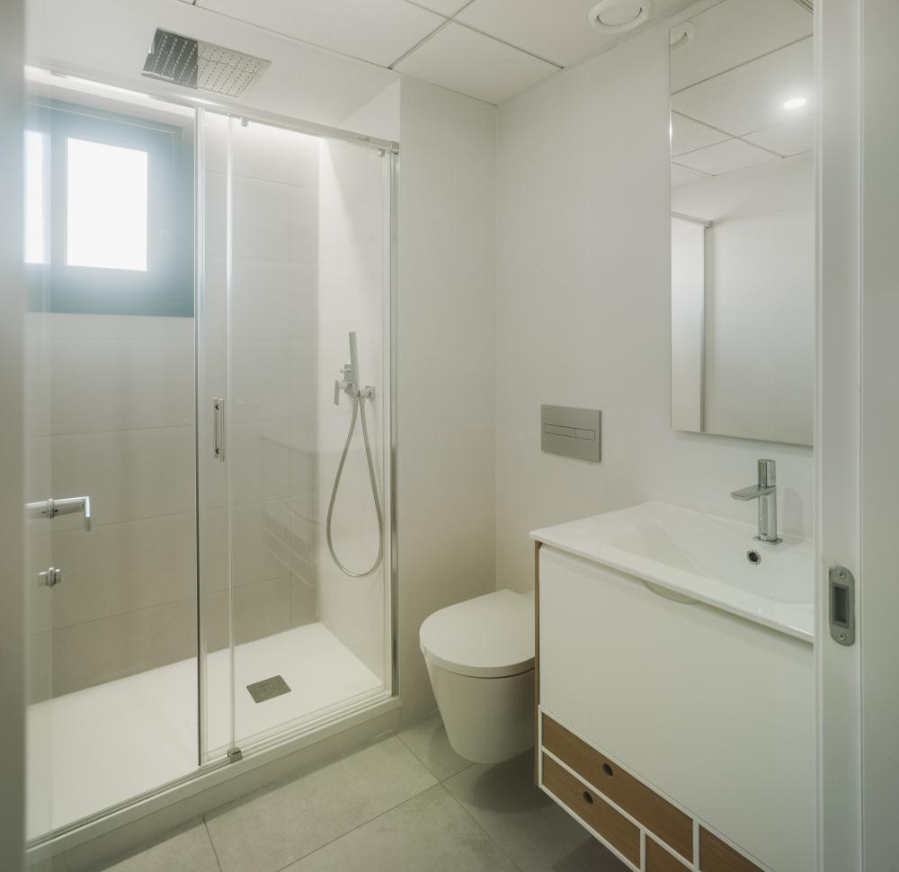 De slaapkamers hebben inbouwkasten met led-binnenverlichting. Volledig ingerichte badkamers met doucheschermen, meubels en spiegel.