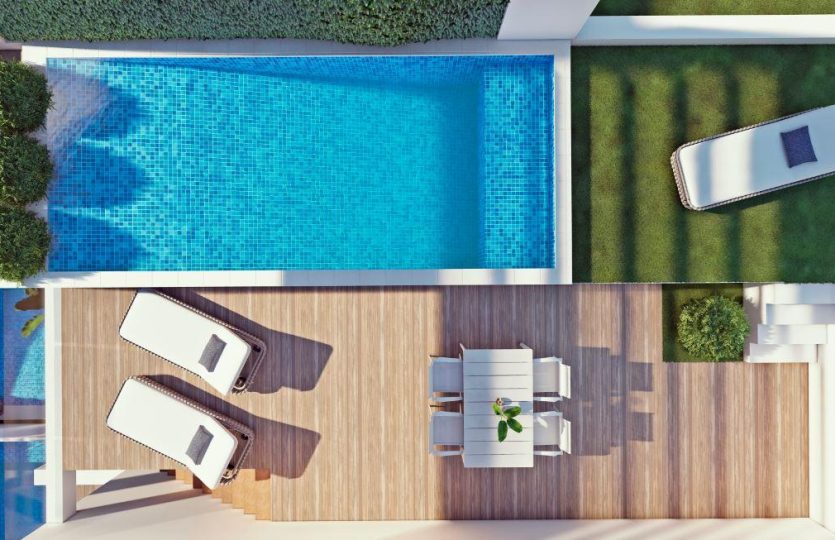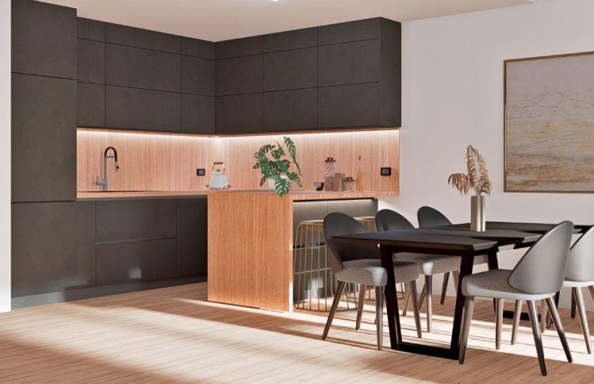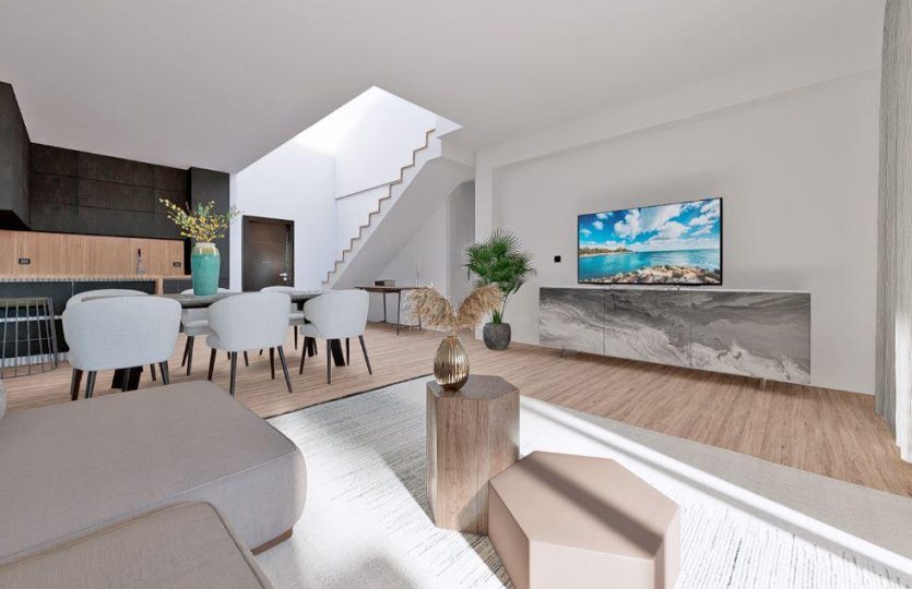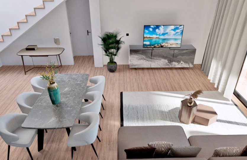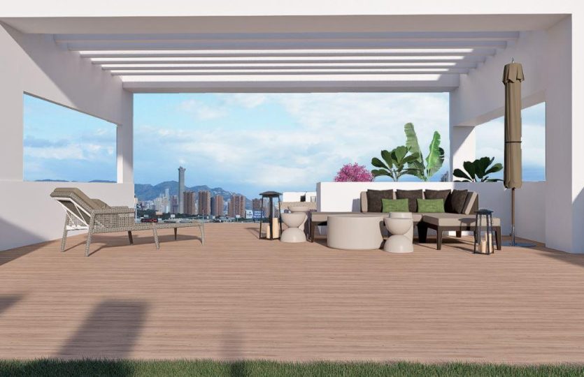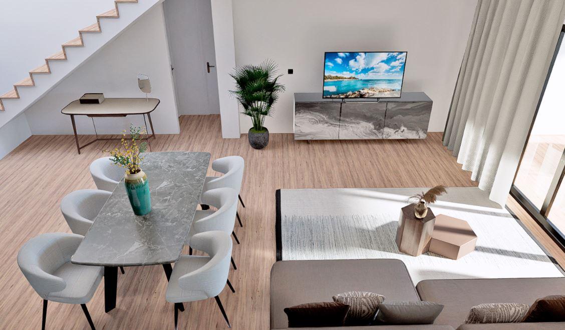 De woningen worden opgeleverd met een volledig ingerichte keuken, badkamers met meubilair, elektrische rolluiken en pre-installatie van airconditioning.