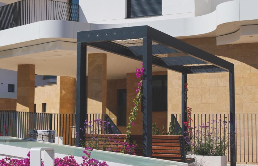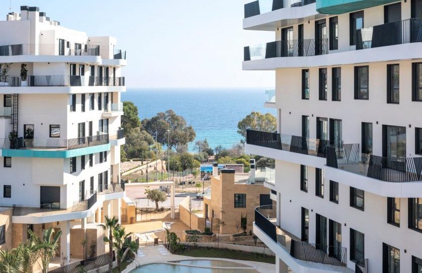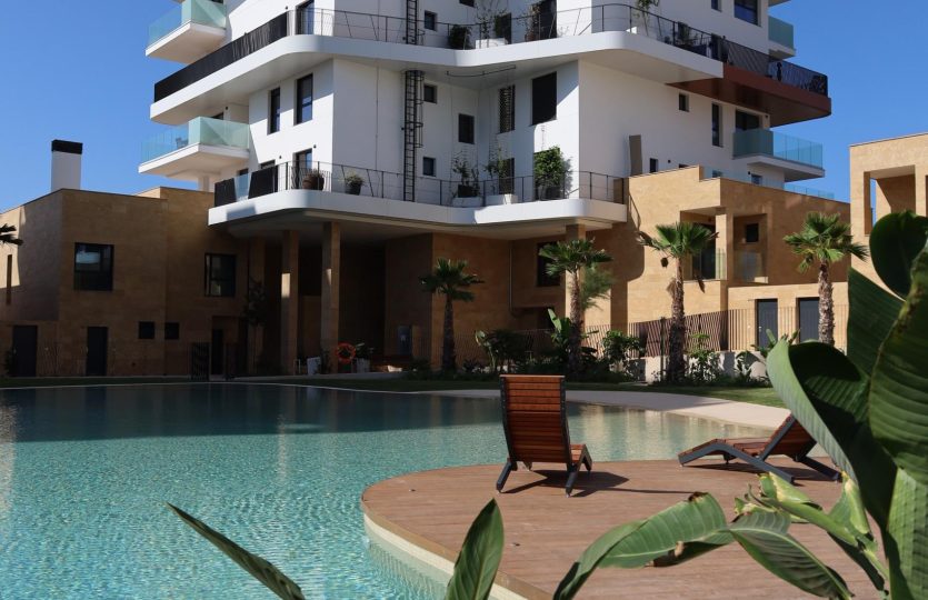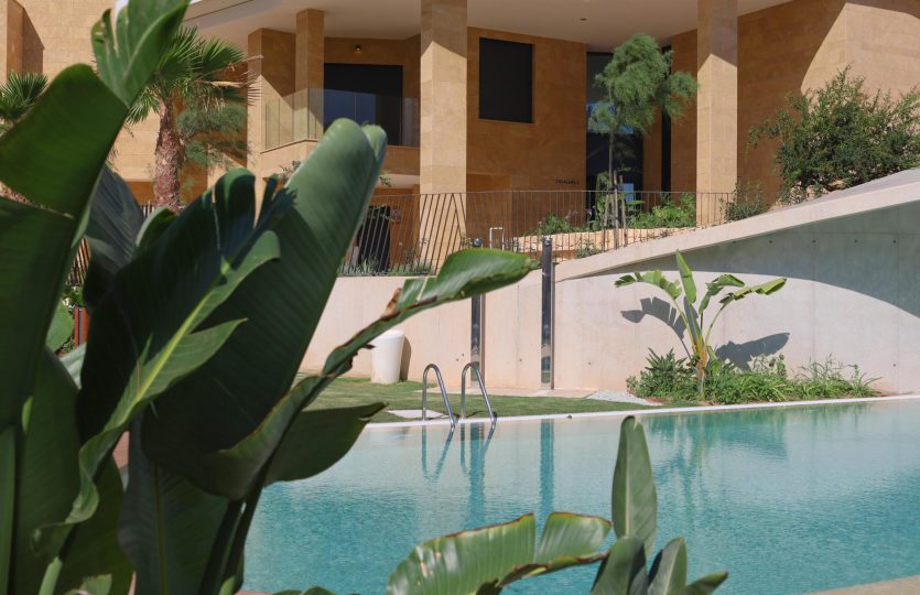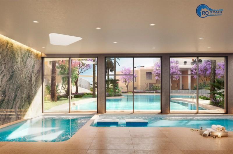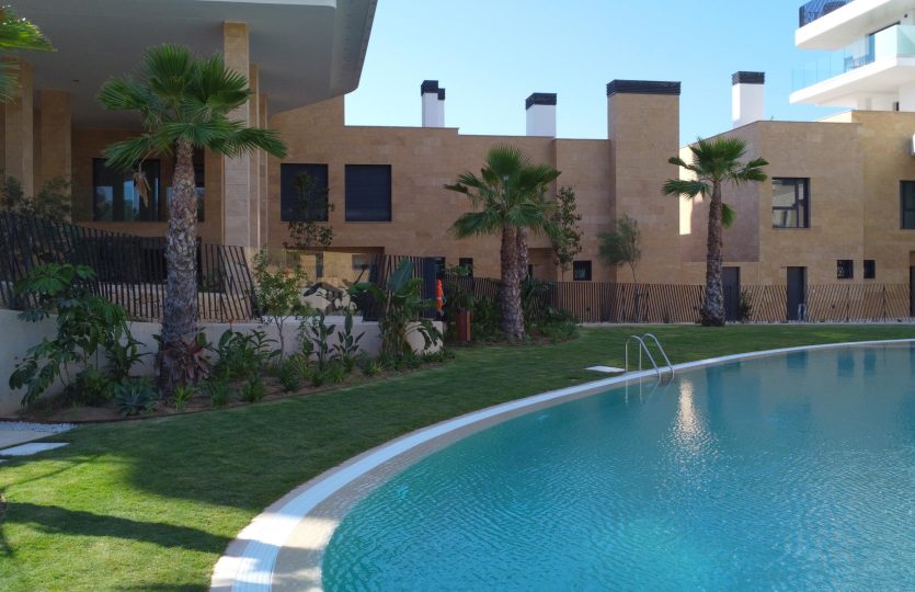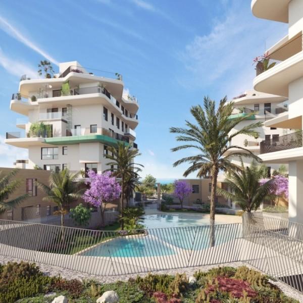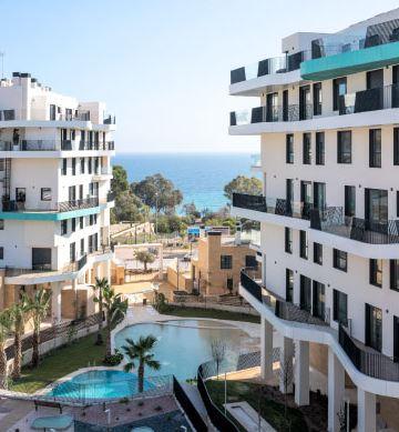 Kenmerken: Gemeenschappelijk zwembad, Ingerichte keuken, Privé parking, Solarium, Terras, Tuin, Voorinstallatie airco, Zeezicht