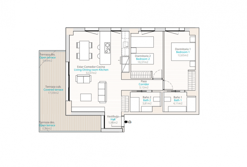De woningen beschikken over 1, 2 of 3 slaapkamers, 1 of 2 badkamers, ruime living/eetkamer, open keuken. Ruime terrassen waar u kunt genieten van het prachtige uitzicht en van de zonsopgang.