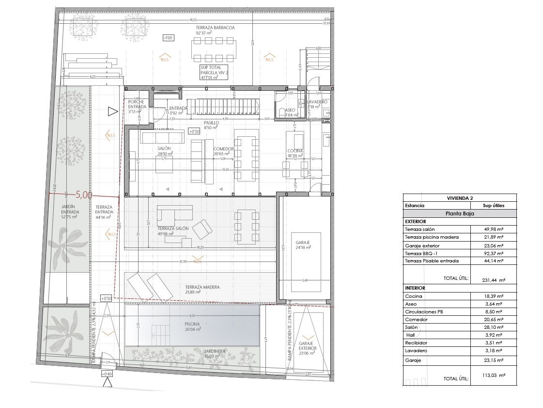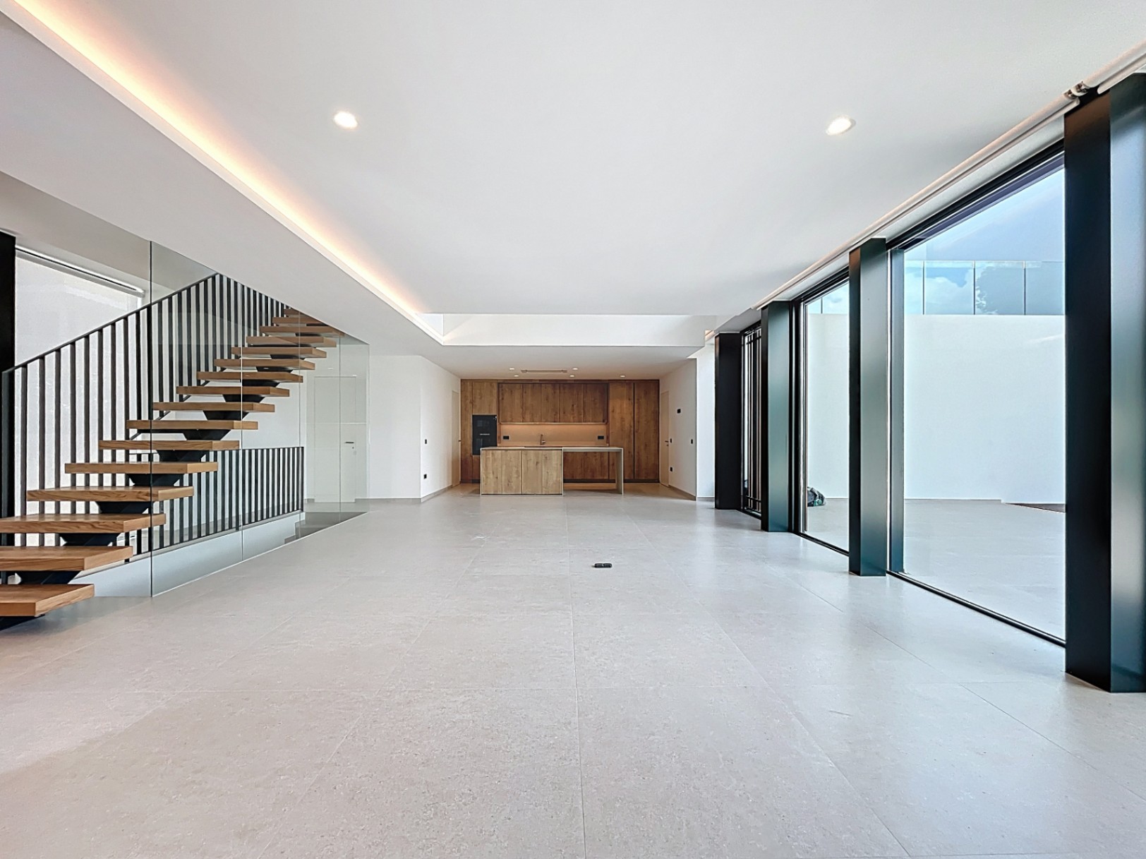 Daarnaast beschikt de woning over een semi-souterrain van 90m² met natuurlijk lichtinval, wat verschillende gebruiksmogelijkheden biedt. De buitenkant is voorzien van een mix van keramische tegels, gras en houten elementen, waardoor verschillende zones zijn ontstaan voor verschillende activiteiten. Het zwembad is ontworpen voor zowel sport als vrije tijd, terwijl een verzonken terras privacy en natuurlijke verlichting toevoegt aan de semi-kelder.