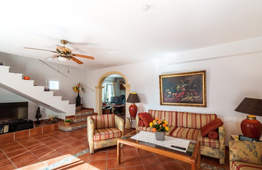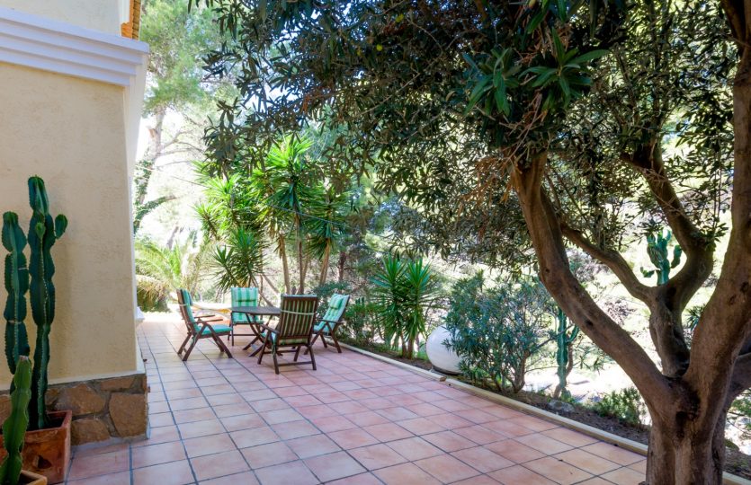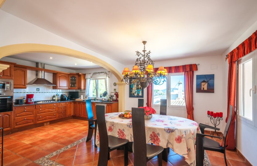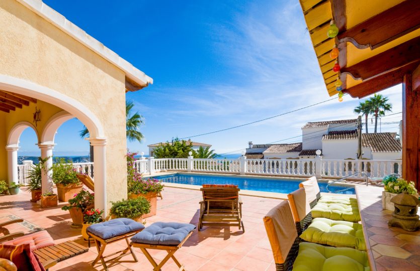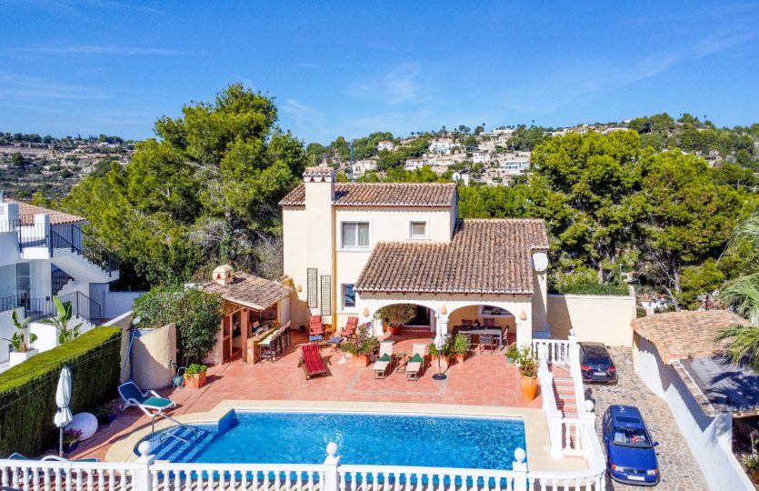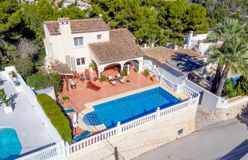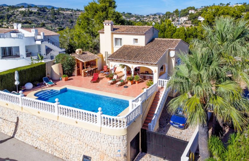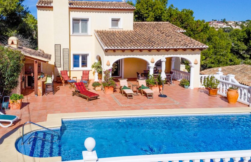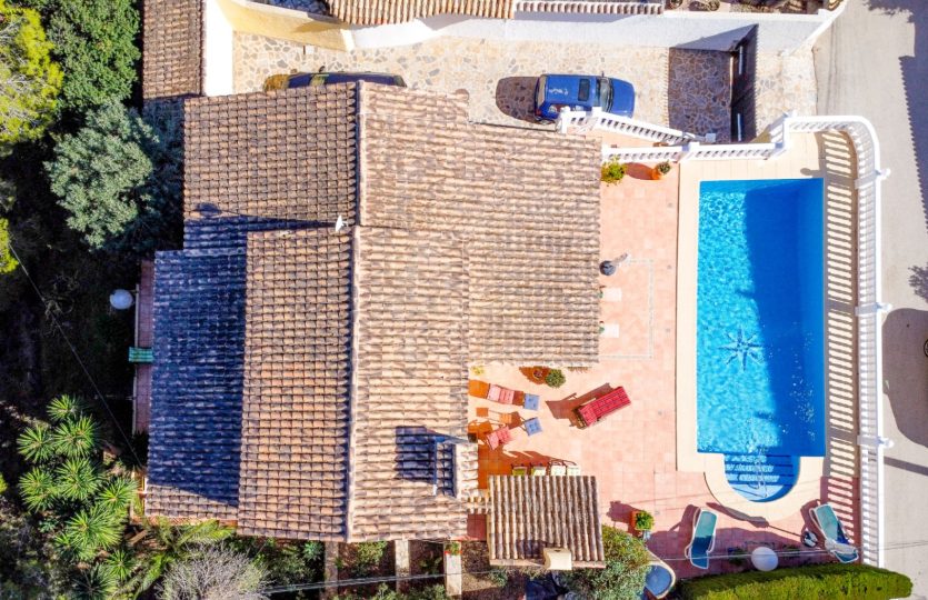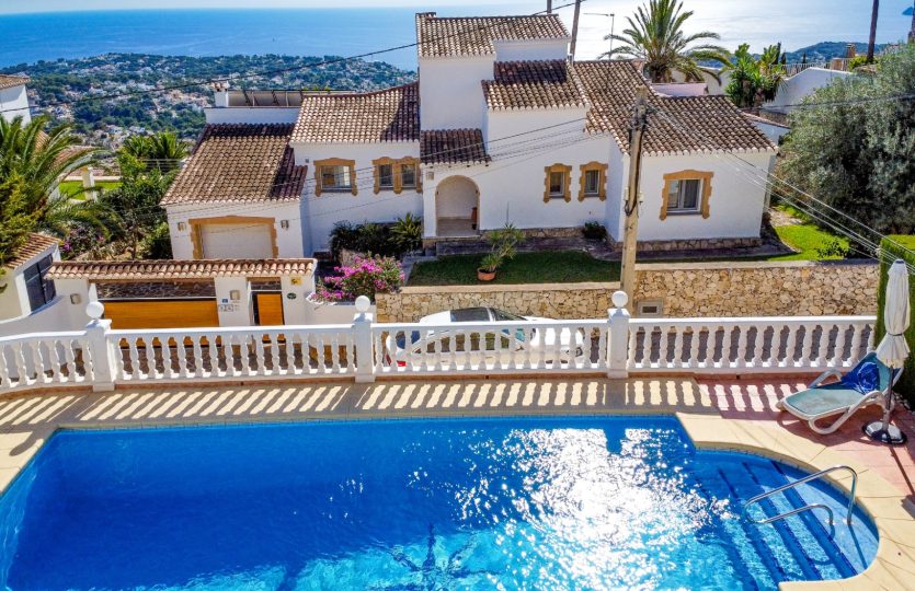 Villa gebouwd in 2004 met zuidelijke ligging en uitzicht op zee, gelegen in Benissa, 6 km van het stadscentrum en 3 km van het strand. De woning biedt verschillende terrassen (sommige overdekt), een tuin, een garage en extra parkeergelegenheid voor twee auto’s. De hoofdwoning omvat een woonkamer, eetkamer, keuken, kantoor dat gemakkelijk kan worden omgebouwd tot een extra slaapkamer, en twee badkamers (één ensuite). Op de bovenverdieping bevindt zich de master bedroom met ensuite badkamer en toegang tot een terras. Buiten is er een overdekt terras, een zwembad van 10×4 m en een buitenkeuken met een bierkraan. Achter het huis is er een ander beschut terras en een tweede buitenkeuken, ook met een bierkraan. Het gastenappartement op de benedenverdieping bestaat uit een woonkamer, eetkamer, keuken, twee slaapkamers en twee badkamers. Extra kenmerken: vloerverwarming in de hoofdwoning, radiatoren in het gastenappartement, gesplitste airconditioning, elektrische rolluiken, horren, automatische poort en volledige privacy.
