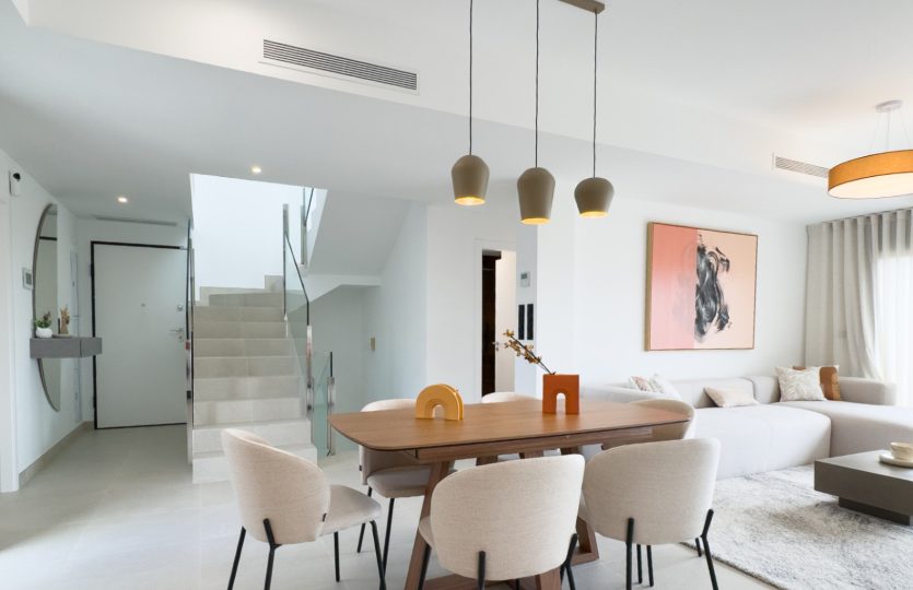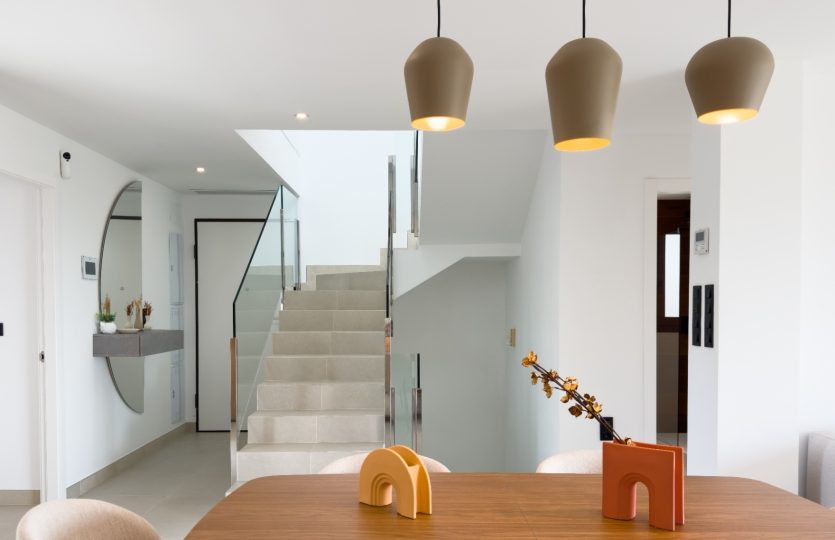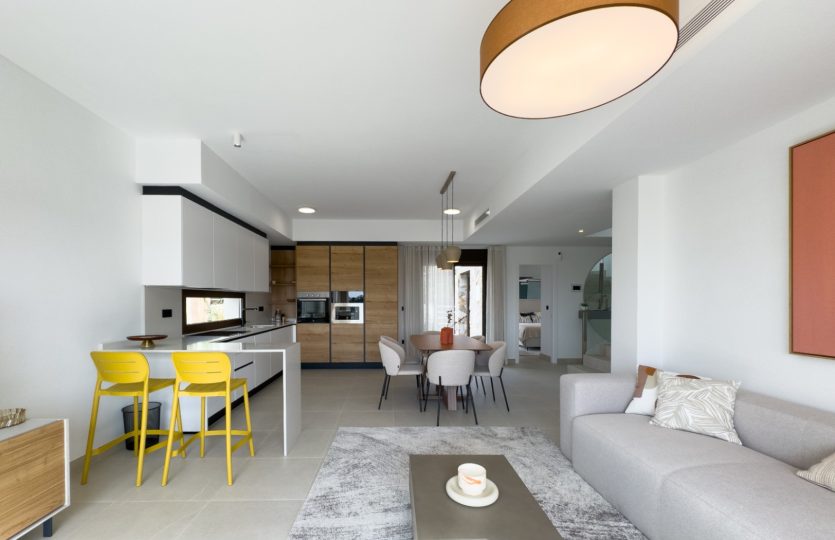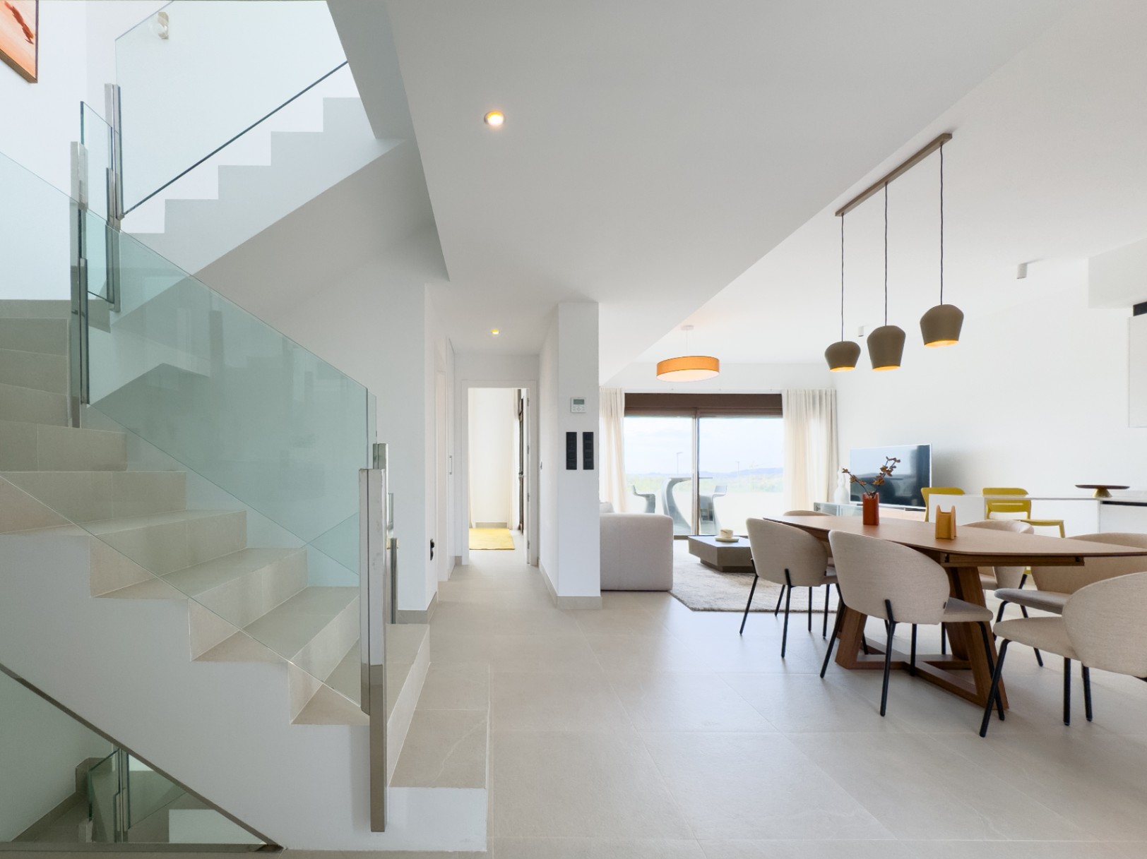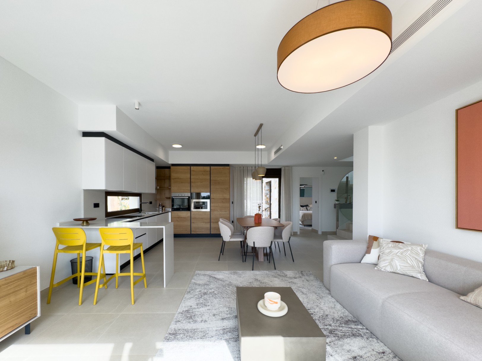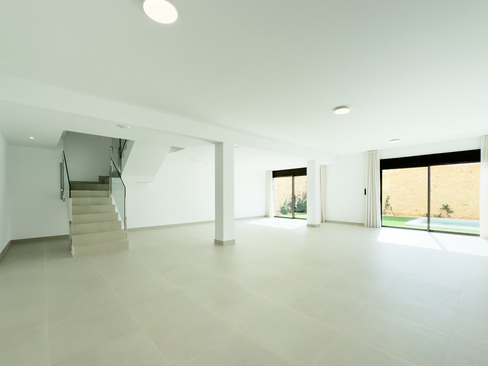 Moderne villa op het zuiden in Finestrat, gebouwd in 2024 en biedt panoramisch uitzicht op de golfbaan en de Middellandse Zee. De woning beschikt over 3 slaapkamers, 2 badkamers, een open woonkamer en eetkamer, en een volledig uitgeruste keuken. Het buitengebied omvat een privézwembad, zonneterras en een onderhoudsvriendelijke tuin. Een ruime onderbouw met natuurlijk licht biedt flexibele opties voor extra woonruimte, een gym of een gastenverblijf. Gelegen in een rustige woonwijk, op slechts enkele minuten van golfbanen, stranden en lokale voorzieningen — ideaal voor modern wonen aan de Costa Blanca.