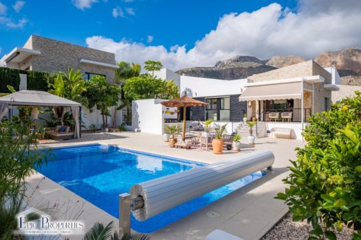 Prachtige villa gelegen in Polop, waar comfort en stijl samensmelten op een ruime kavel van 400 m². Deze woning combineert luxe en functionaliteit, met ruime leefruimtes verspreid over verschillende niveaus. Bij binnenkomst in de villa word je verwelkomd door een lichte woonkamer-eetkamer die perfect is verbonden met een volledig uitgeruste keuken. De begane grond beschikt ook over twee slaapkamers, een badkamer en een terras met directe toegang tot het zwembad. Op de eerste verdieping bevindt zich de master bedroom met en-suite badkamer en een privéterras met indrukwekkend uitzicht. De kelder is volledig afgewerkt en beschikt over twee extra slaapkamers, een badkamer en een gezellige woonkamer, wat meerdere gebruiksmogelijkheden biedt. Aan de buitenkant omringt de tuin het privézwembad en creëert een oase van rust in de open lucht. Daarnaast is er een aparte berging ideaal voor het opbergen van fietsen en andere spullen.