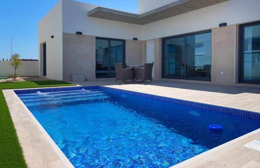 Met betrekking tot de buitenruimtes beschikken de villa’s over grote terrassen, tuinen en privézwembaden. Ook hebben ze een bovengrondse parkeerplaats.