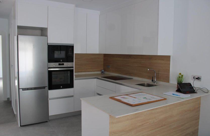 Het keukenontwerp is een open concept en wordt geleverd met boven- en onderkasten.