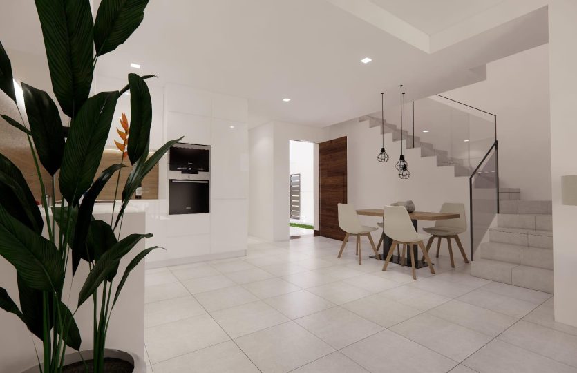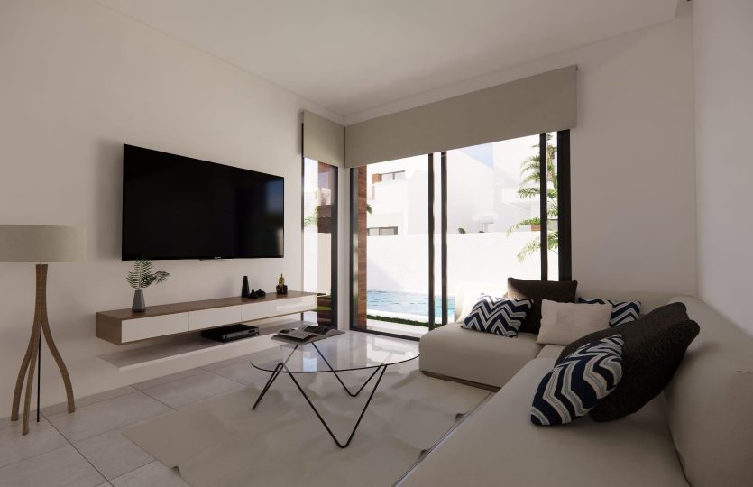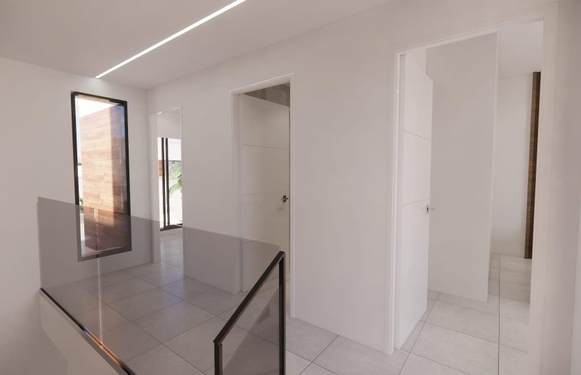 Alle woningen hebben grote buitenruimtes, aangezien de kavels vanaf 181 m2 zijn. Terrassen, privézwembad en solarium om te genieten van het heerlijke klimaat van de Costa Blanca. Dat is ook de reden waarom een van de belangrijkste kenmerken van deze huizen is dat ze grote ramen hebben om maximale lichtinval te creëren.