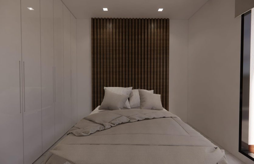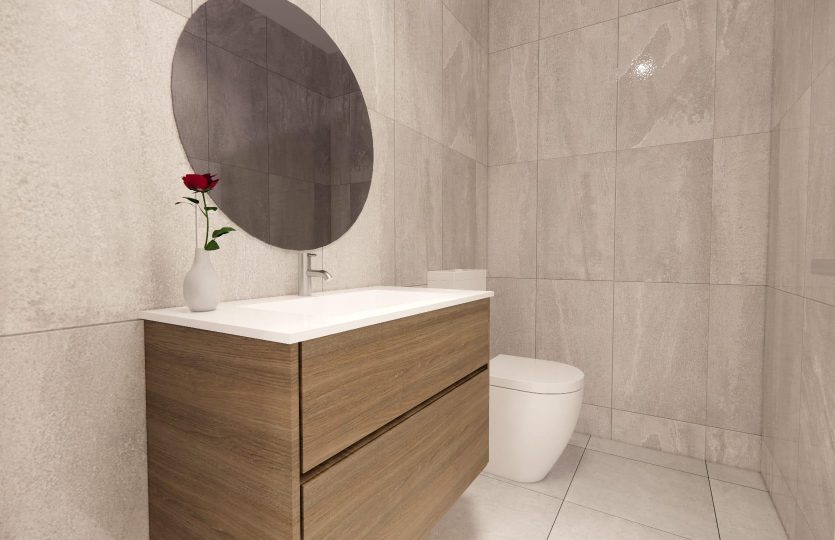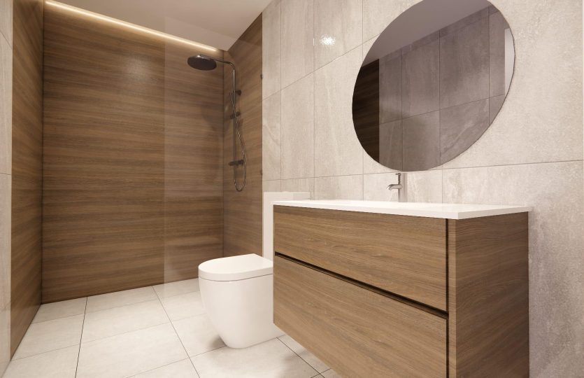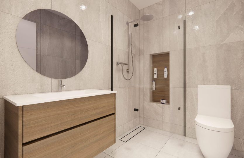 De slaapkamers krijgen inbouwkasten en de badkamers worden compleet opgeleverd: spiegel, kast en douchescherm.